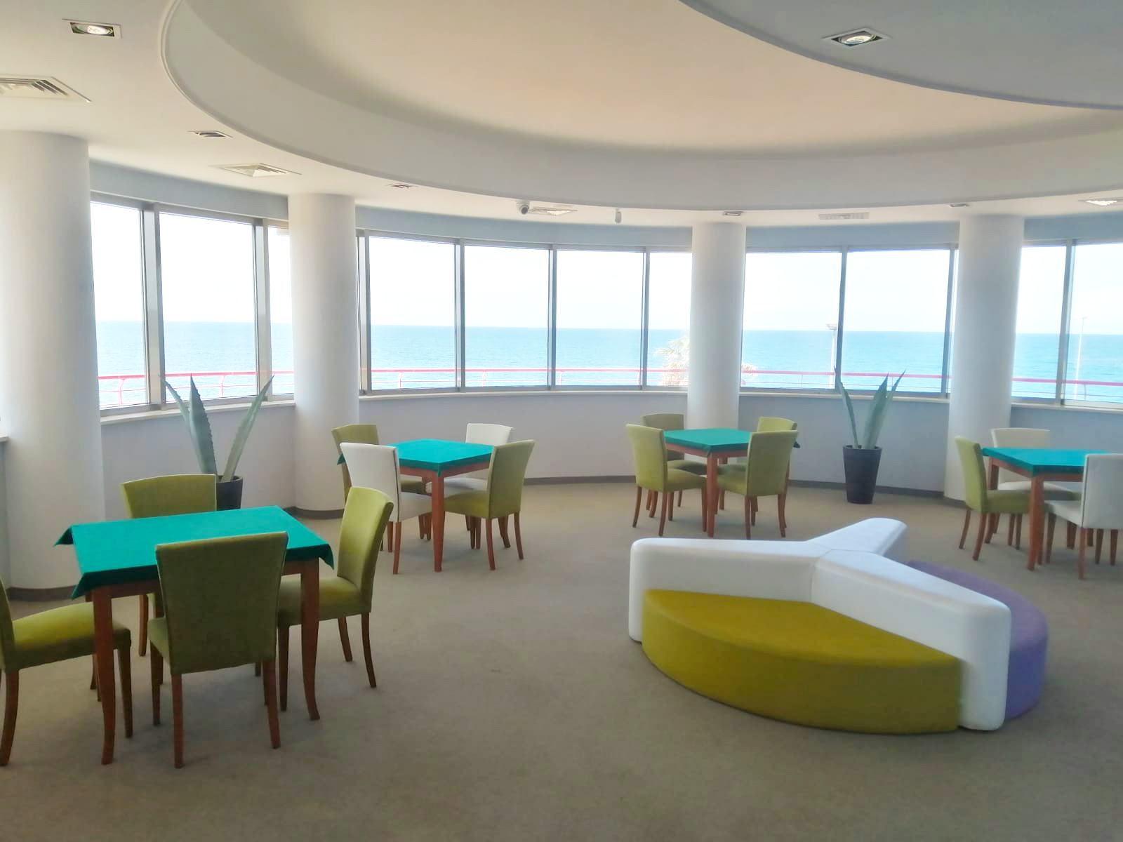 What definition would better represent these common areas situated on hotel’s floors? Given the strong and sophisticated similarity of Jonico Hotel to a ship,these areas with a 180° sea view look like a ship’s bridge.