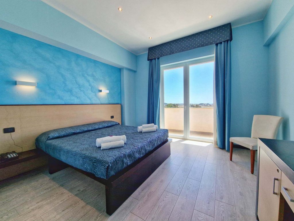 Le 36 camere dell’Jonico Hotel di Marina di Alliste distribuite su due piani panoramici, affrescate con tonalità di colore tipicamente mediterranee, offrono una rilassante vista sul mare cristallino della costa Jonica.